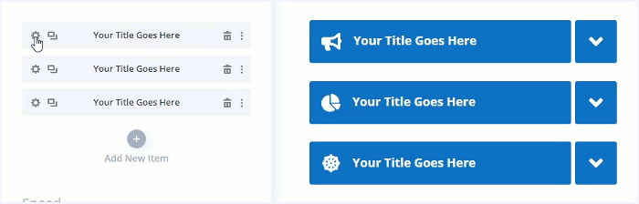 Enable left and/or right icons for the accordion items.