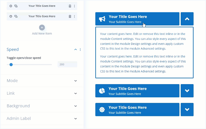 Control the accordion item content opening/closing speed.