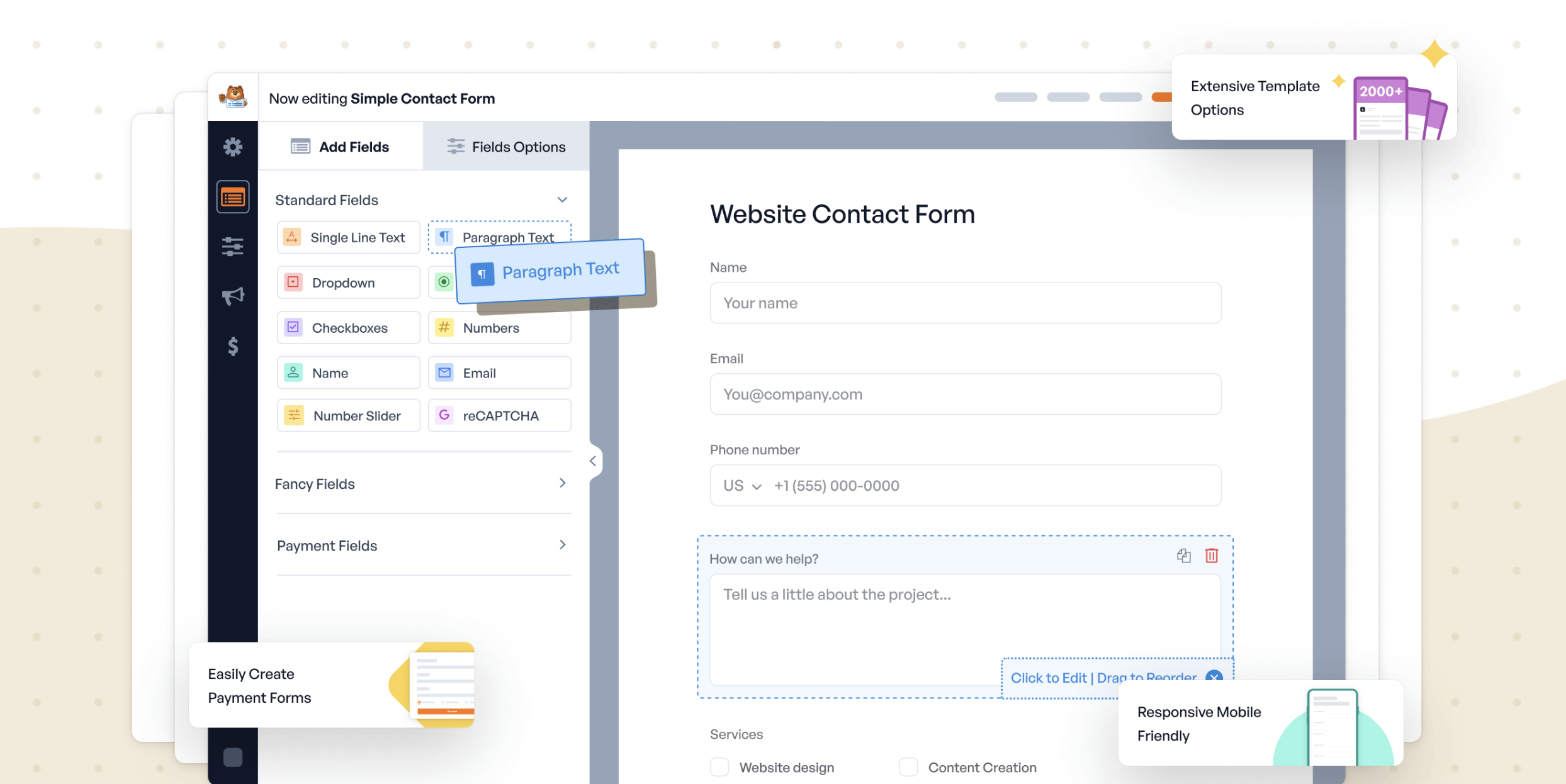 WPForms combines simplicity and flexibility with its intuitive drag-and-drop form builder. You can create fully functional contact forms, surveys, registration pages, and order forms within minutes—no coding required. The interface is built to be clear and visual, so building a form feels as natural as sketching one on paper.